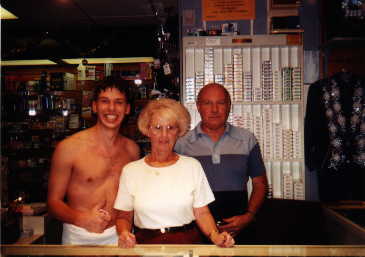 Here I am with the couple who runs the convience store in the lobby of the hotel. (Just in case you were wondering, I am ONLY wearing a towel in that picture (yow!) :)