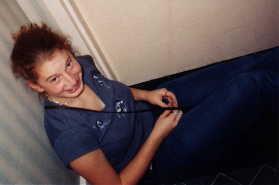 Kristen and Stacey mak'n in the Hilton
