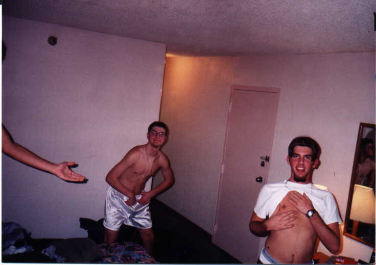 I take pride in this one. Dave, Andy's Arm, and Derek (right). In our room revealing to the camerea what we do late at night :)